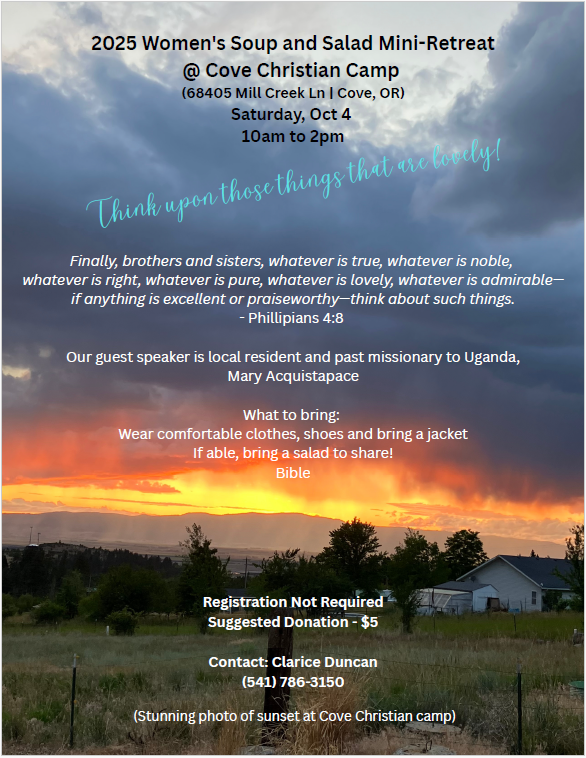 The NW Association of Christian Churches Board of Directors will host the annual Fall Planning Meeting on October 11th, 2025 beginning at 10am at Imbler Christian Church.
